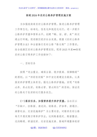/ 街道2024年农村公路养护管理实施方案