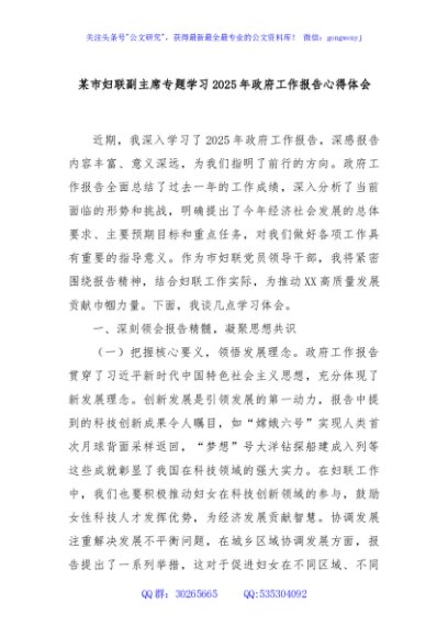 / 某市妇联副主席专题学习2025年政府工作报告心得体会