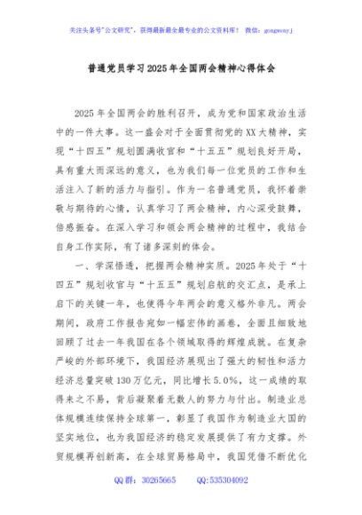 / 普通党员学习2025年全国两会精神心得体会
