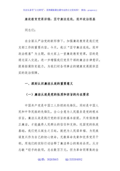 / 廉政教育党课讲稿:坚守廉洁底线,筑牢政治根基