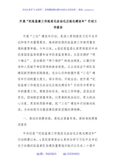 开展“纪检监察工作规范化法治化正规化建设年”行动工作报告