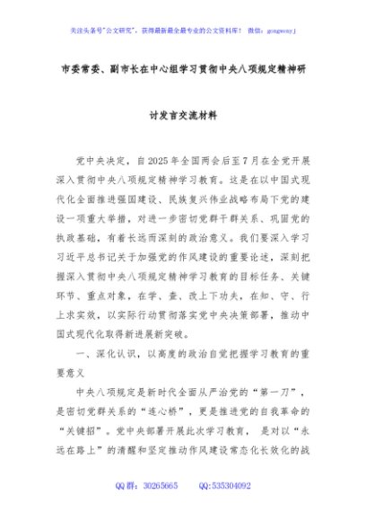 / 市委常委、副市长在中心组学习贯彻中央八项规定精神研讨发言交流材料