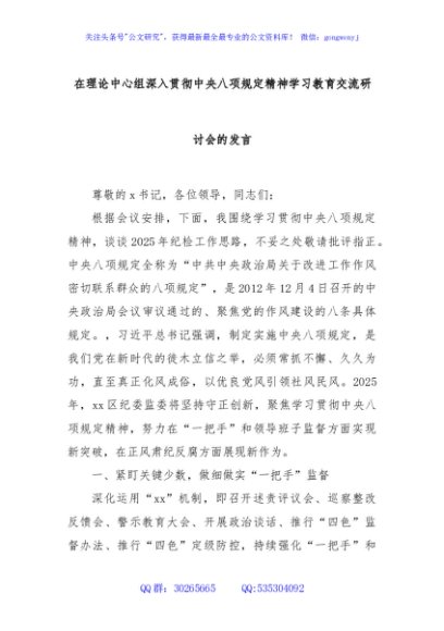/ 在理论中心组深入贯彻中央八项规定精神学习教育交流研讨会的发言