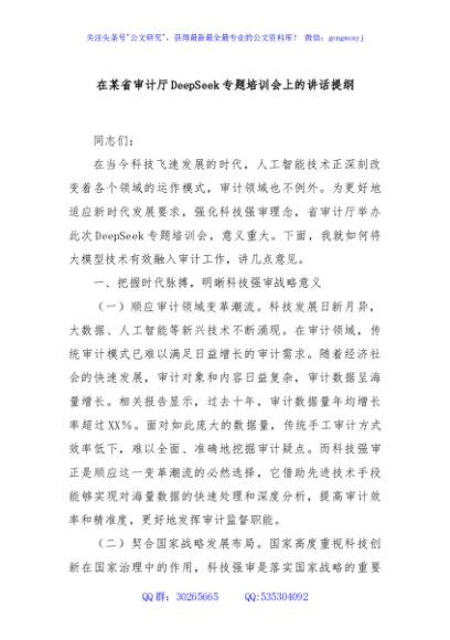 / 在某省审计厅DeepSeek专题培训会上的讲话提纲