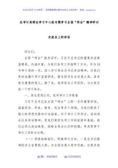 / 在审计局理论学习中心组专题学习全国“两会”精神研讨交流会上的讲话