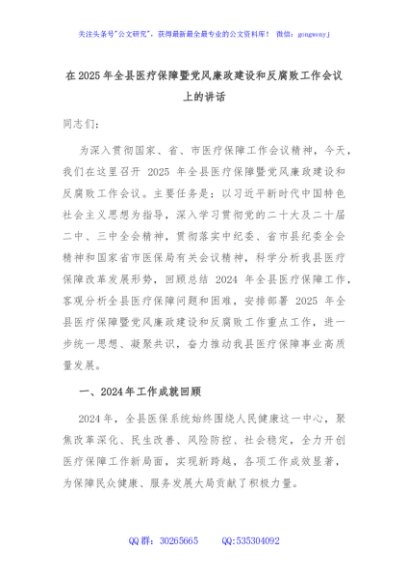 / 在2025年全县医疗保障暨党风廉政建设和反腐败工作会议上的讲话