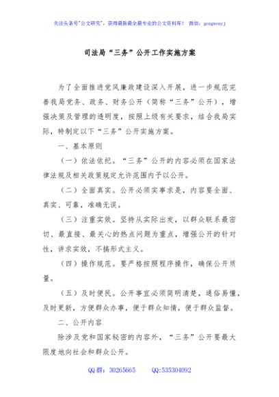 / 司法局“三务”公开工作实施方案