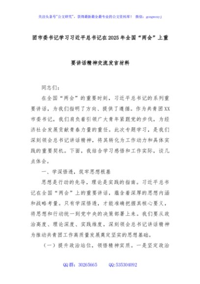 / 团市委书记学习习总书记在2025年全国“两会”上重要讲话精神交流发言材料