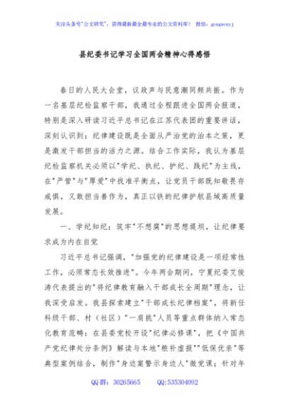 / 县纪委书记学习全国两会精神心得感悟