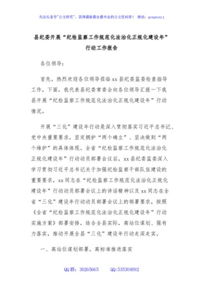 / 县纪委开展“纪检监察工作规范化法治化正规化建设年”行动工作报告