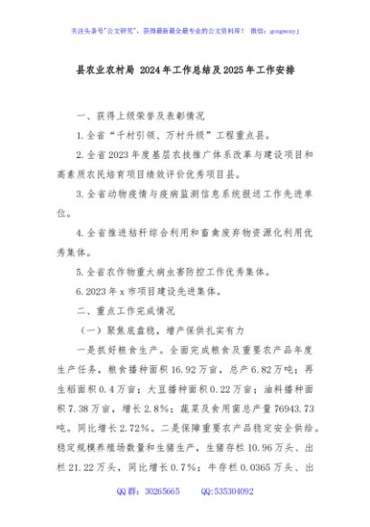 / 县农业农村局 2024年工作总结及2025年工作安排