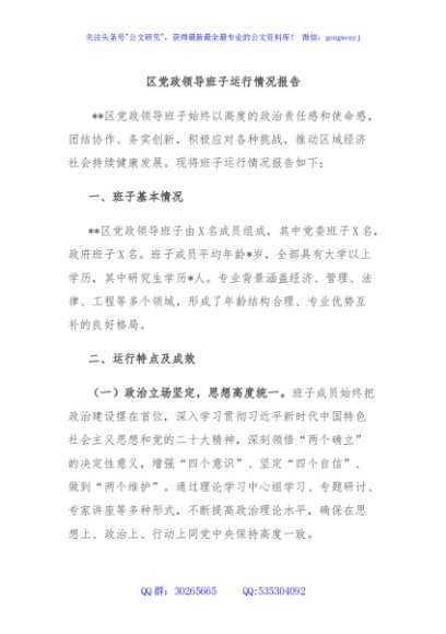 / 区党政领导班子运行情况报告