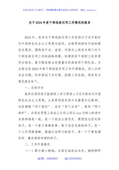 / 关于2024年度干部选拔任用工作情况的报告