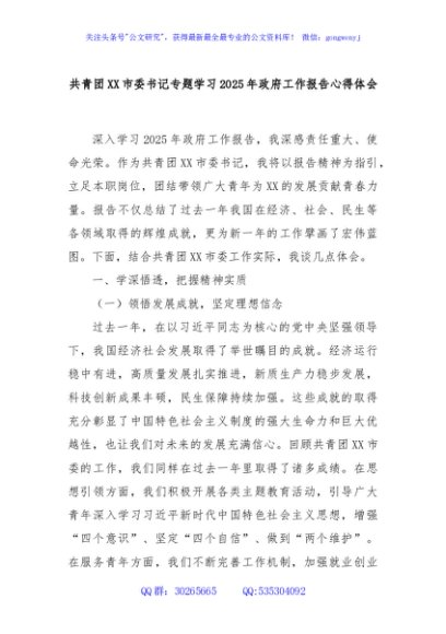 / 共青团XX市委书记专题学习2025年政府工作报告心得体会