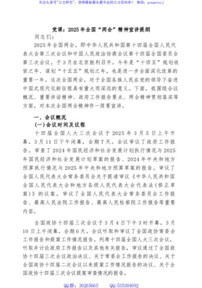 / 党课:2025年全国“两会”精神宣讲提纲