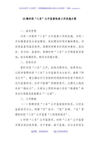 / XX镇村级“三务”公开监督检查工作实施方案