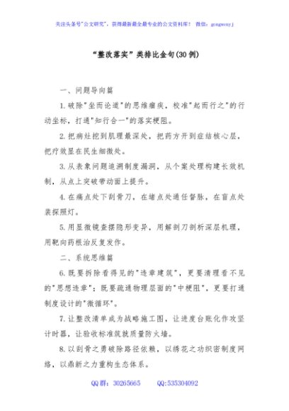 / “整改落实”类排比金句30例