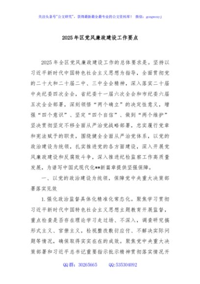 / 2025年区党风廉政建设工作要点