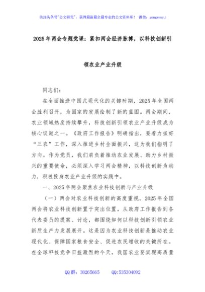2025年两会专题党课:紧扣两会经济脉搏,以科技创新引领农业产业升级