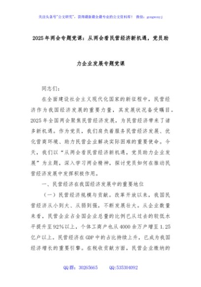 / 2025年两会专题党课:从两会看民营经济新机遇,党员助力企业发展专题党课