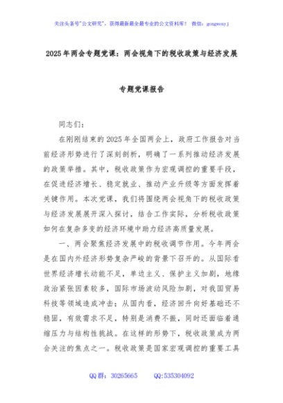 / 2025年两会专题党课:两会视角下的税收政策与经济发展专题党课报告