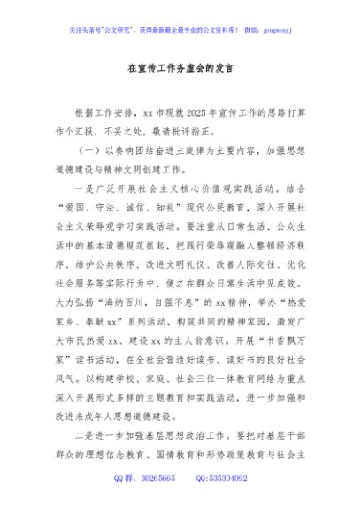 / 在宣传工作务虚会的发言