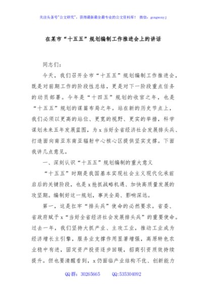 / 在某市“十五五”规划编制工作推进会上的讲话