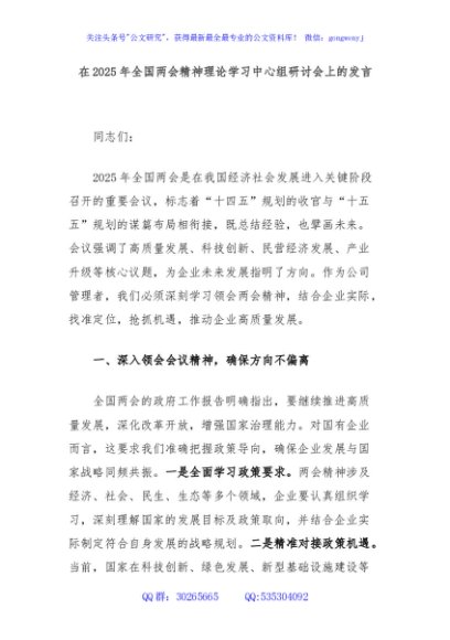 / 在2025年全国两会精神理论学习中心组研讨会上的发言