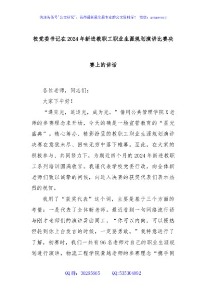 / 校党委书记在2024年新进教职工职业生涯规划演讲比赛决赛上的讲话