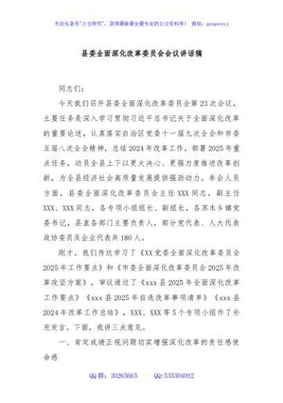 / 县委全面深化改革委员会会议讲话稿