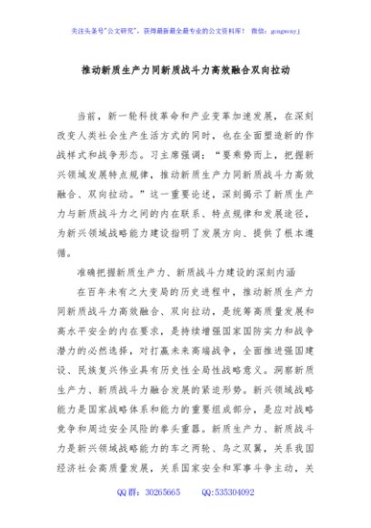 / 推动新质生产力同新质战斗力高效融合双向拉动