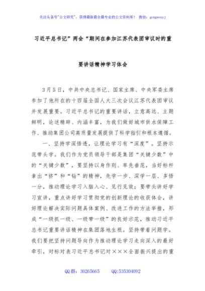 / 习近平总书记”两会“期间在参加江苏代表团审议时的重要讲话精神学习体会