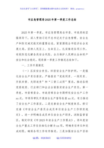 / 市应急管理局2025年第一季度工作总结