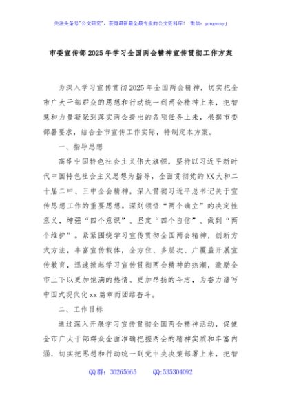 / 市委宣传部2025年学习全国两会精神宣传贯彻工作方案