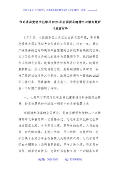 / 市司法局党组书记学习2025年全国两会精神中心组专题研讨发言材料