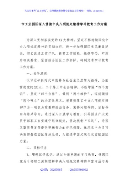 / 市工业园区深入贯彻中央八项规定精神学习教育工作方案