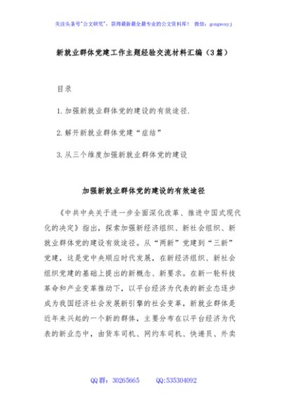 / (3篇)新就业群体党建工作主题经验交流材料汇编