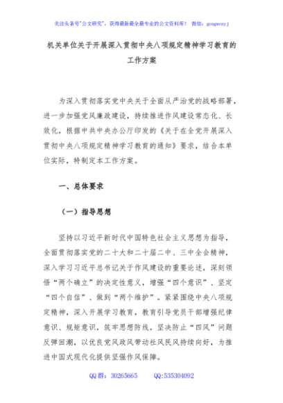 / 机关单位关于开展深入贯彻中央八项规定精神学习教育的工作方案