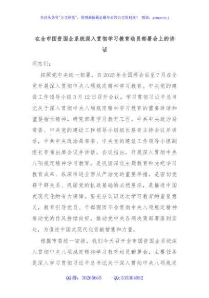 / 在全市国资国企系统深入贯彻学习教育动员部署会上的讲话