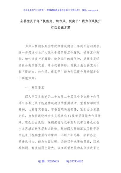 / 全县党员干部“提能力、转作风、促实干”能力作风提升行动实施方案