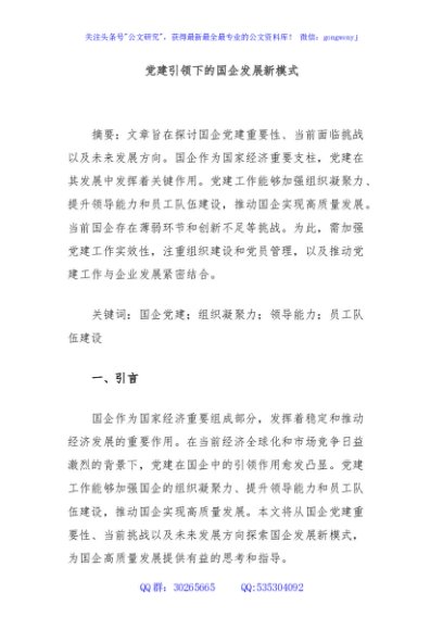 / 党建引领下的国企发展新模式