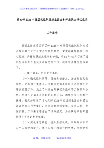 / 党支部2024年基层党组织组织生活会和开展民主评议党员工作报告