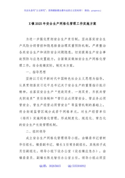 / X镇2025年安全生产网格化管理工作实施方案