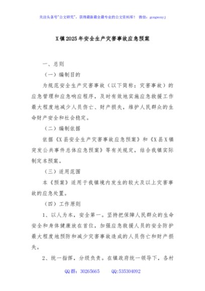 / X镇2025年安全生产灾害事故应急预案
