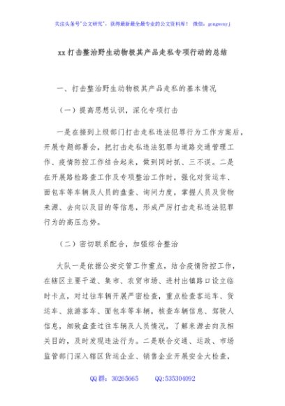 / xx打击整治野生动物极其产品走私专项行动的总结