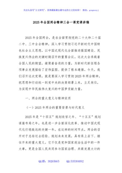 / 2025年全国两会精神三会一课党课讲稿