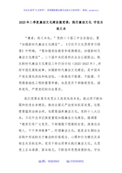 / 2025年二季度廉洁文化建设微党课:践行廉洁文化守住为政之本