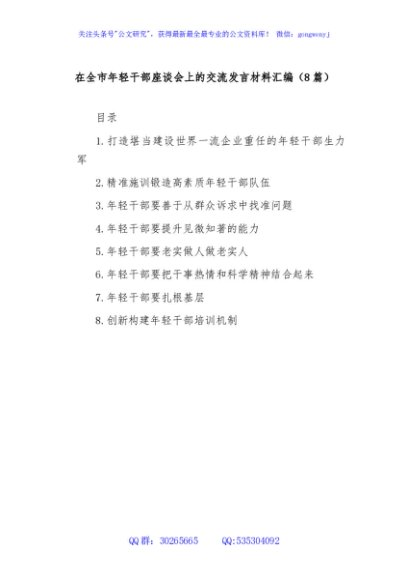 (8篇)在全市年轻干部座谈会上的交流发言材料汇编