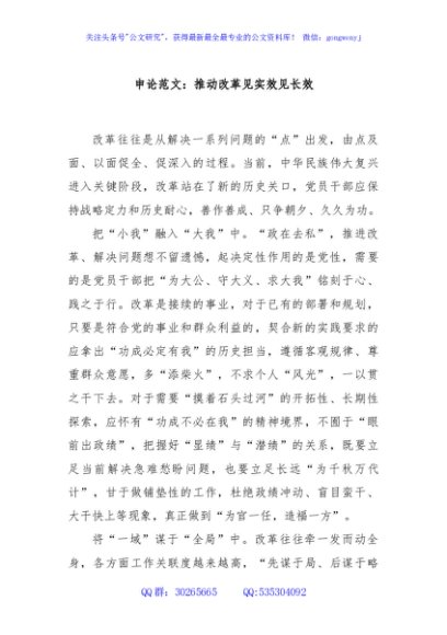 申论范文:推动改革见实效见长效