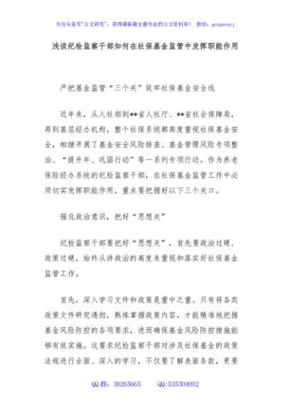 / 浅谈纪检监察干部如何在社保基金监管中发挥职能作用